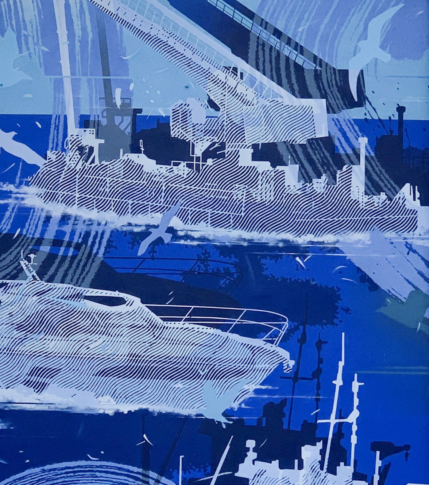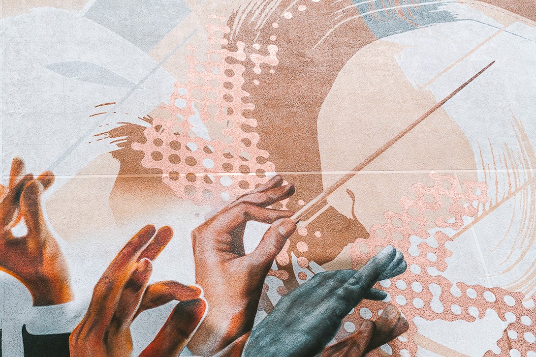 I create large-scale wall art for offices, hospitality, retail, and public spaces — from concept to clean execution.